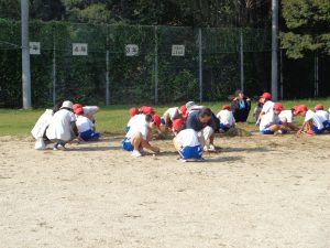 子どもたちは、教室に戻ると、朝の会で応援歌や合唱を歌っています。この日は、外に残って草取りをしてくださる地域の方に聞こえるように、窓を開けて歌いました。