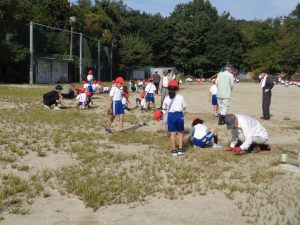 3回目ともなると、子どもたちは地域の方と打ち解けて、会話をしながら草を取っています。