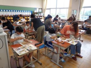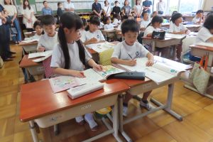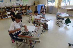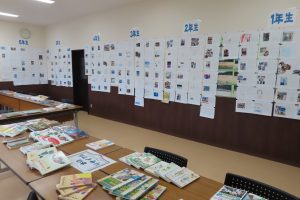 会議室には、子育て委員会企画による「夏休みの思い出」が展示されました。