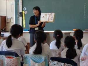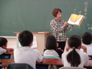 読み聞かせのあとに、子どもが感想を述べる時間があります。だんだん、感想の話し方が上手になってきました。本に親しむ子を育てることにつながっています。