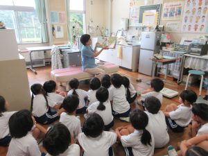 プライベートゾーンを見せない。触らせない。嫌なことがあったら、相談する。やめてという。など、図書を使って説明しました。