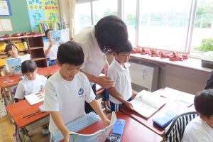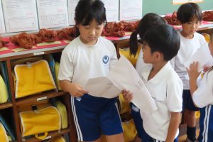 かにのなかまの、モクズショイが身を隠す方法を読み、体を使って表しました。