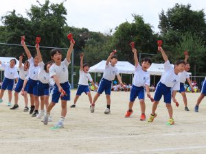 学年ごとの競技、個人競技では、自己ベストを出し、赤が勝つこともたくさんあったから、3点差の勝負になったのだと思います。負ける経験、全力でやっても勝てるときばかりでないと知る経験もできたと言えます。