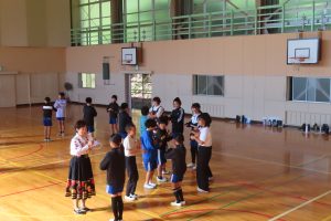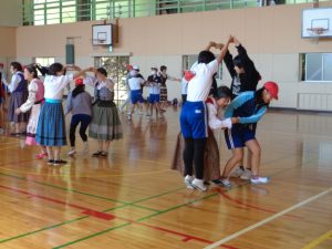 体育科の学習で、フォークダンスを行いました。表現運動の一つです。