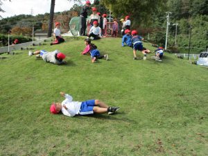 公園で遊んでいます。秋の清々しさを体で感じることにつながります。