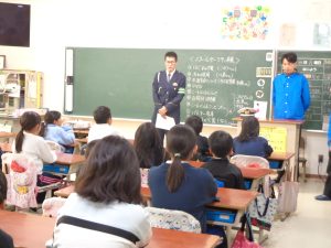 スクールセーフティ事業で、警察官とJAFの方のお話を聞きました。