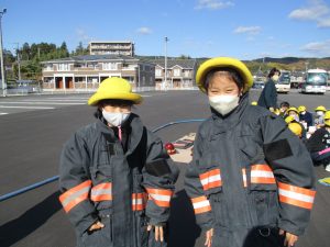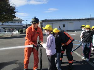 煙の体験、放水や消防服などの体験をしました。