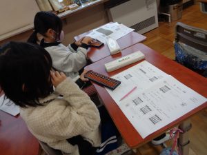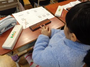 3年性が、そろばんの学習をしていました。