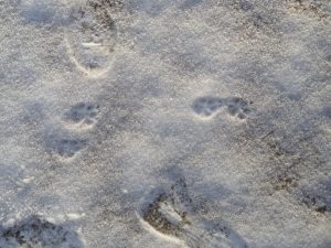 動物の足跡 発見。たぬきかな? ねこかな?