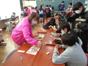 6年生児童が、押し葉や花を使って、しおりを作りました。