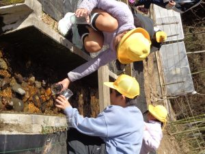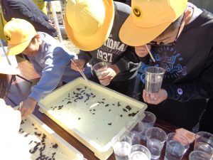 5年生は1年間「環境」について学習してきました。この日は、ホタルの幼虫を放流しました。
